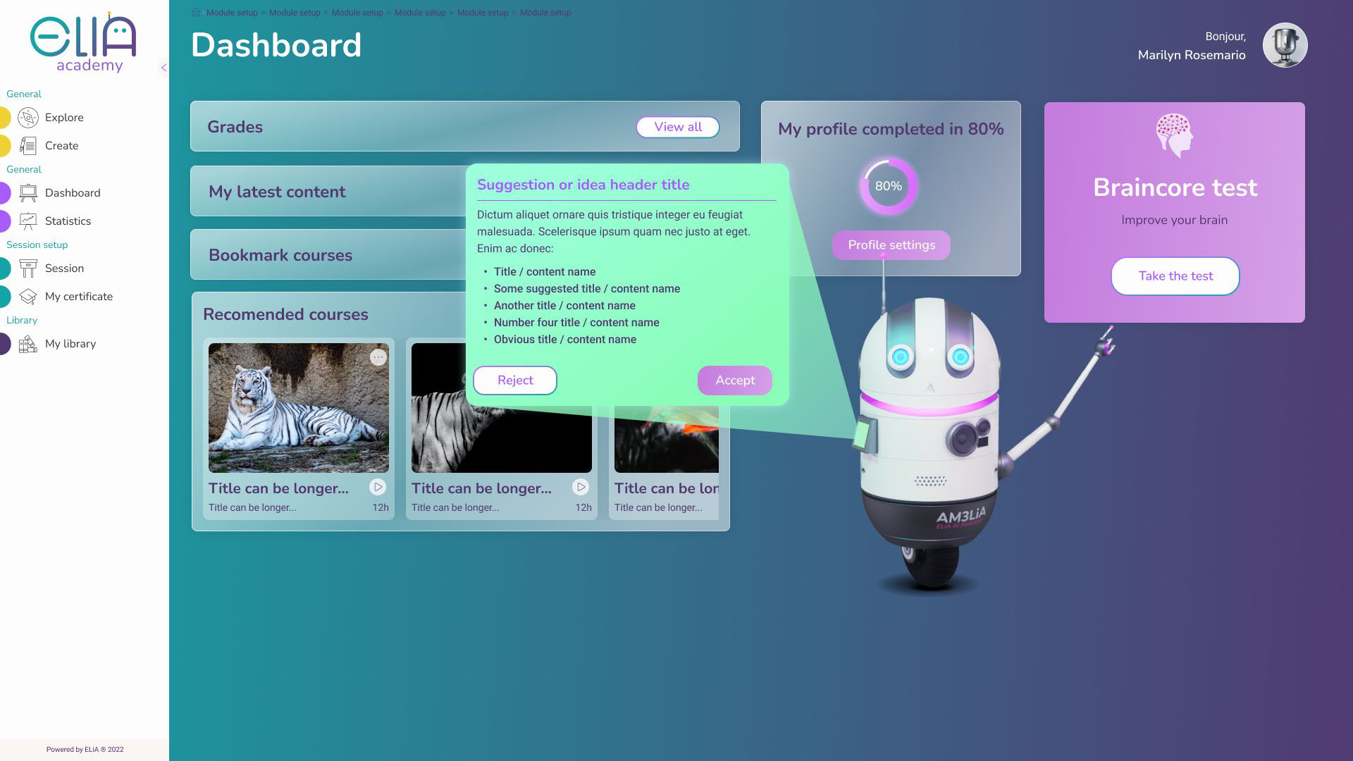 The fourth phase focused on further platform testing and refinement, including UX/UI design for generative creation of new educational content and features aimed at improving the overall learning experience. We also explored the introduction of gamification mechanics and animated avatars that evolve alongside the user’s learning progress.